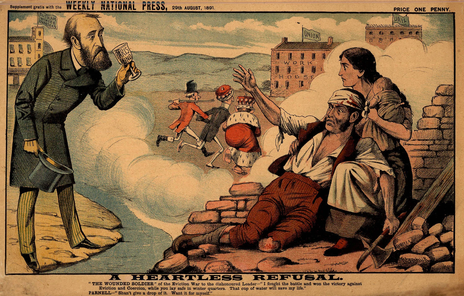 "A heartless refusal", 1891 cartoon from the National Press by Thomas Fitzpatrick.