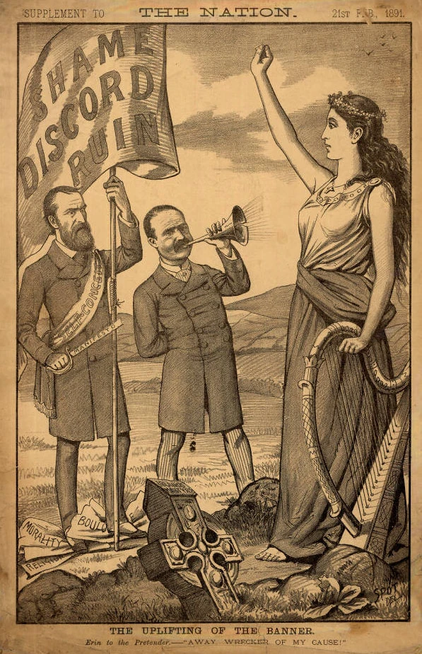 "The uplifting of the banner", 1891 cartoon from The Nation by "Spot" (Thomas Fitzpatrick).
