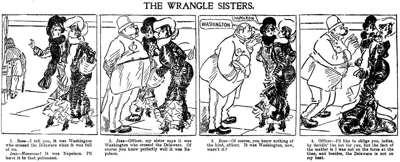 The Wrangle Sisters was a strip about two young socialites by Marjorie Organ, which ran in the New York Journal from 8 December 1904 to 7 January 1905.